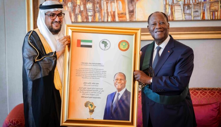 Remettant les Insignes de cette distinction au Chef de l’État, le Secrétaire Général du Forum d’Abu Dhabi pour la Paix, Sheick Al- Mahfoudh Ben BAYYAH, a indiqué que ce Prix lui est attribué en reconnaissance de son parcours prestigieux et de sa contribution tangible à la promotion de la paix et du développement en Côte d’Ivoire et dans la sous- région.