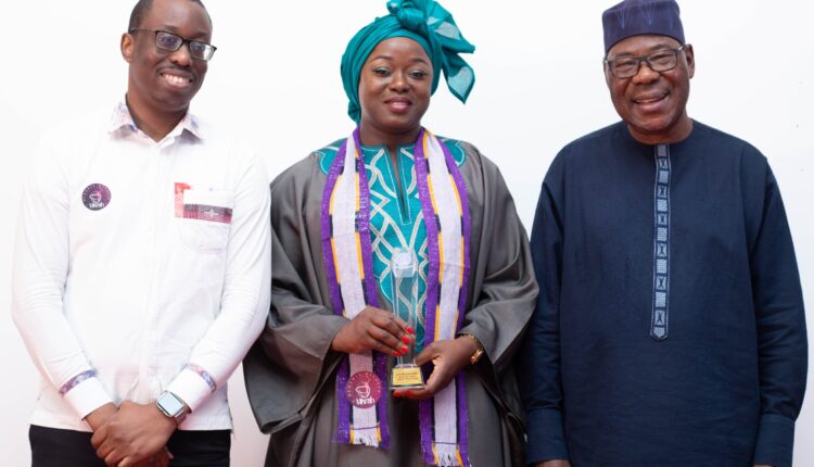 La camarade Fleur Aké M’Bo Esther a reçu son prix des mains de Son Excellence Yayi Boni, ancien Président de la République du Bénin. D’autres personnalités ont reçu également des distinctions, à savoir le Pasteur Mohammed Sanogo, fondateur des églises Vases d’Honneur et le journaliste Ly Aimé, Super Ebony 2024.